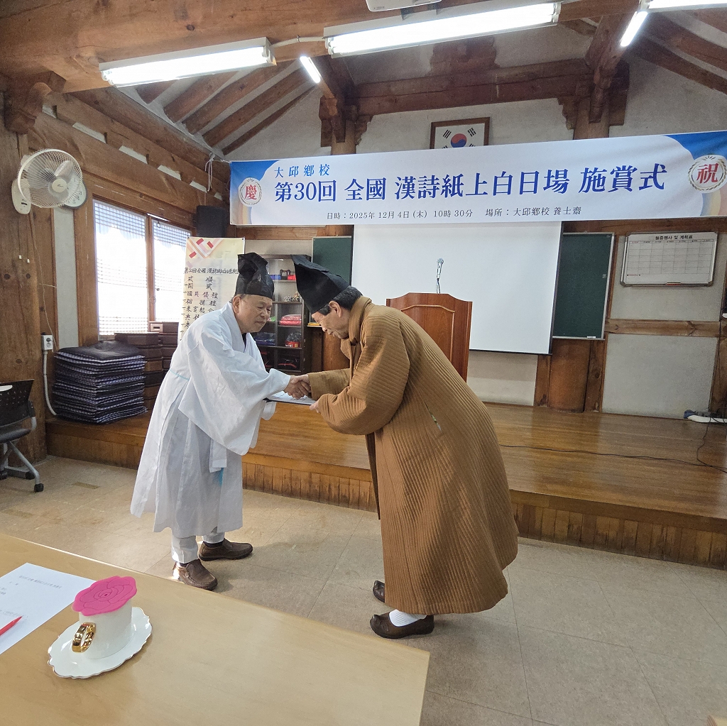 >내용 : 대구향교 주최 한시 백일장 입상자 시상식
