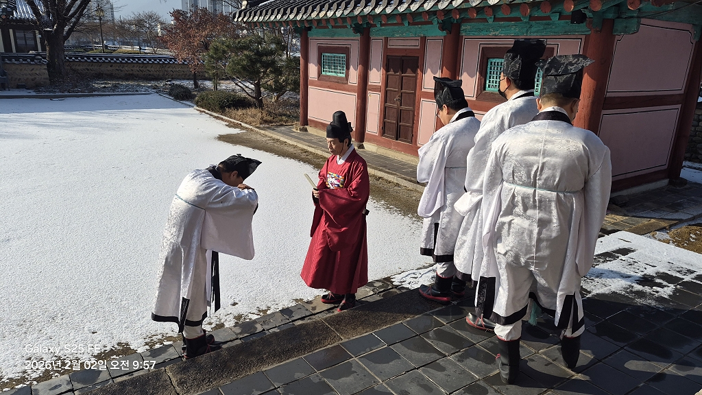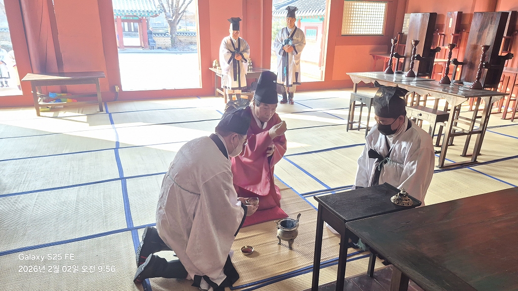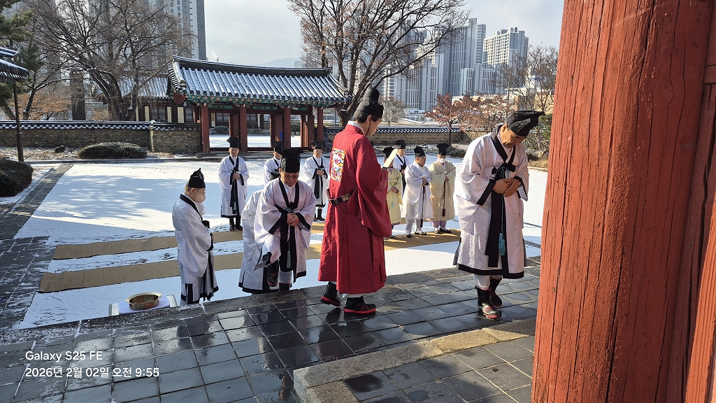 오늘은 아침 강설로 인하여 참례하신 유림들은 대강당에서 참례하였음