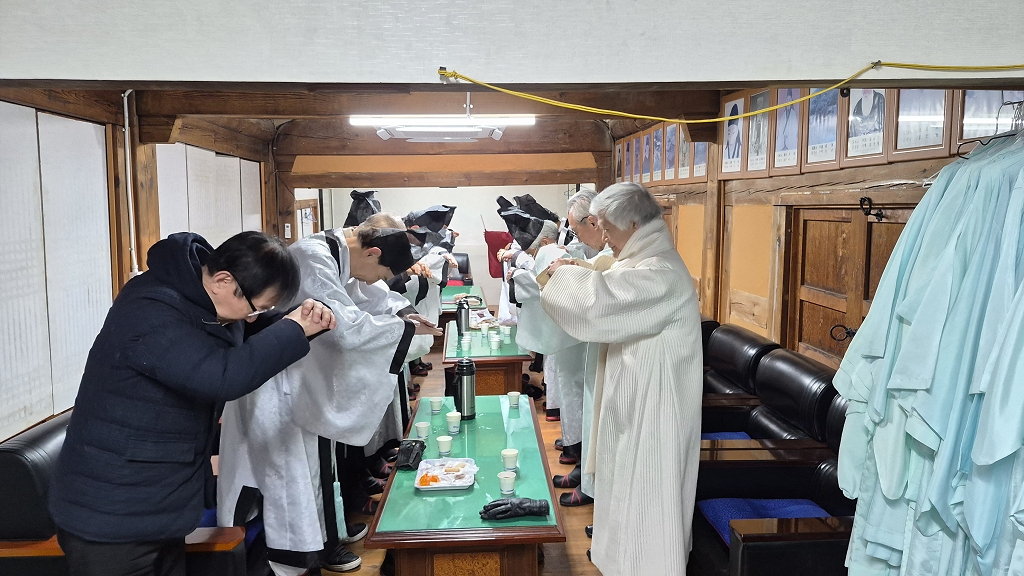 오늘은 민족의 명절 설날으로 동재에서 서로 상읍(새배를 갈음)을 하고 도인석 전교의 덕담이 있었다.