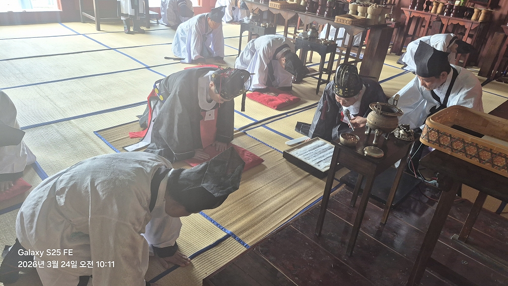 묘사 유학 배효길. 집례 유학 박해율, 대축 유학유윤환, 찬창 이시현, 알자 석윤순, 찬인 구자양, 우종경 이하생략합니다