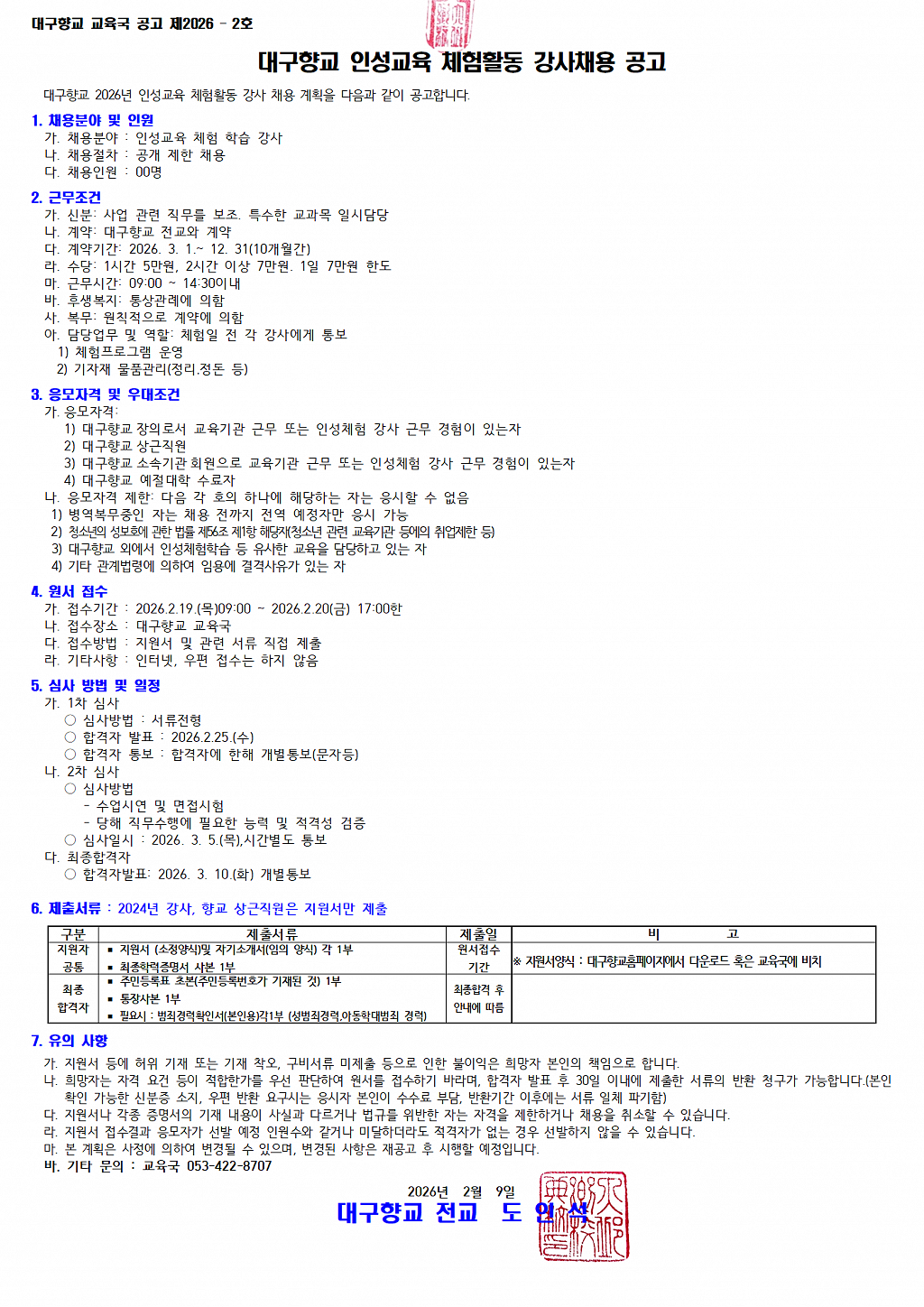 대구향교 인성교육 체험활동 강사 채용 공고